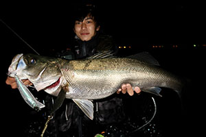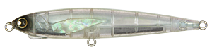 ナイトゲームに強いクリアボディに、青粒グローを吹き付け、さらにヒレ部分にアワビを貼り部分的にUV塗装をすることでアピール性を増した、対ナイトゲーム用のまさに究極の全部入りスペシャルカラー。秋のハイシーズンあらゆるシチュエーションに対応できるよう、LONGIN主要ルアーにラインアップしました(UV塗装はアワビのヒレ部分のみとなります)。