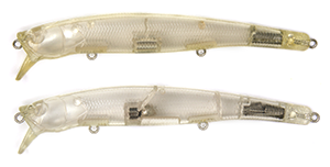 ノーテンションで浮かべると垂直浮きするほどの後方重心で、泳ぎ出しの良さと流れへの対応力の広さを実現。固定重心にしかできない強いアクションが最大の特徴です。この強いアクションを生み出す抵抗感を使い、極力スローに引くことで絶妙なロールアクションを発生させます。このロールアクションが様々なベイトパターンに合わせやすく、イナッコ・落ち鮎・コノシロはもちろん、カタクチイワシやマイワシパターンでも高い実績を誇ります。 【SF(重心移動/スローフローティング)】 重心移動ウエイト構造にすることでFの欠点だった飛距離を伸ばすことに成功。さらに、強いアクションを維持したままFよりも速巻きが可能なため、深いレンジを攻められるようになっています。ウエイトボールを前に持ってくれば、河川周りでのドリフト攻略やサーチベイトとしてガンガン巻いて広範囲を強いアピール力で探ることもできます。しっかり水を掴むことができるリップ構造を持つため、飛距離を生かしてサーフなど複雑な流れの中での使用もできるので攻略エリアが大幅に広がります。 |