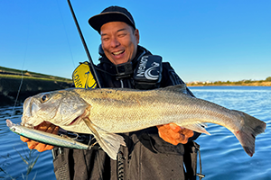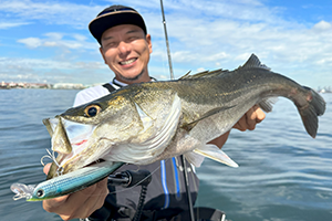 トゥイッチやジャークも可能ですが、ベイトに当たるレンジをゆっくりただ巻きが一番効果的。ボディが大きいのでしっかり振り抜けるレベルの強めのタックルかベイトタックルの使用がオススメです。