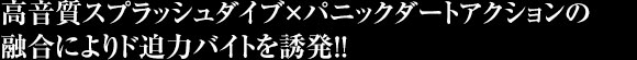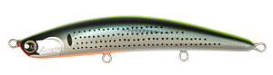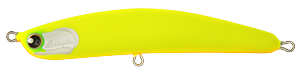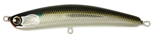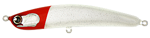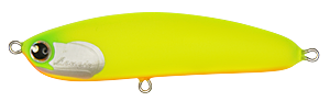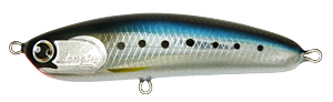 浮き姿勢は垂直。ベンド(曲がり)の強い形状から生まれるパニックダートアクションは、入水後左右に大きくイレギュラーダートを繰り返し、逃げ惑うベイトを演出。水面直下でのギラつきの強いアピール力が、低活性時でもド迫力バイトを誘発します。トップアイに搭載したカップにより、ダイブの際にパニック時のベイトフィッシュが発する高音質ダイブ音とスプラッシュを両立する事を可能にし、深場まで広範囲にアピールします。